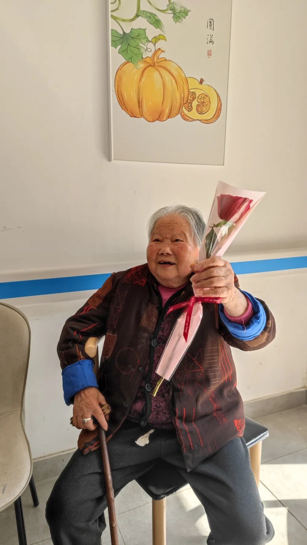 宇諾科技黨員志愿者一行為女性長者們送上了玫瑰花束,奶奶們收到了花束,每個(gè)人臉上都洋溢著如花般的笑容,歲月的痕跡不是年輪是奶奶們的芳華夢。
